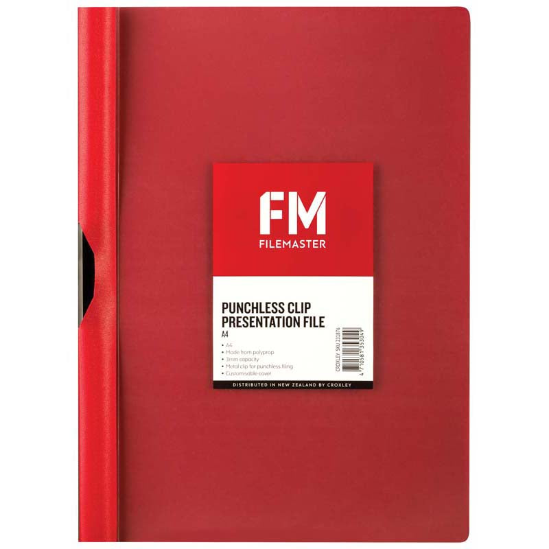 FM Clipfile Punchless Red A4 3mm Polyprop
